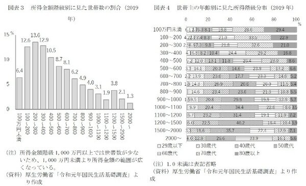 世帯の所得分布の全体像~2千万円以上の高所得世帯は1.3%、50・60歳代や大都市で多い