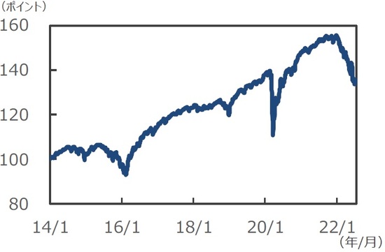 ■金利が大きく上昇したことに加え、スプレッドが拡大したことを受けて、米ハイイールド社債の年初来騰落率は、▲14.2%と低迷しました。