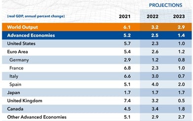 米国の2022年の成長率見通しは2.3%(4月3.7%)、23年は1.0%(4月2.3%)、中国は22年が2.6%(4月2.8%)、23年は1.2%(4月2.3%)とそれぞれ下方修正された。世界的な物価高や欧米の急速な金融引き締め、中国ではロックダウンが影響して、先行きは厳しい見方となった。