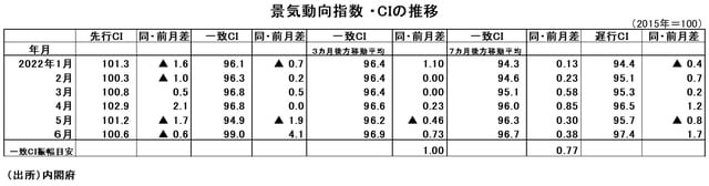 ※当レポートの閲覧に当たっては【ご注意】をご参照ください(見当たらない場合は関連記事『2022年6月分景気動向指数(速報値)』を参照)。