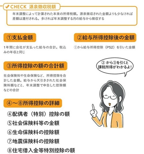 年末調整の結果、本来の所得税がいくらになったかをまとめたものが、源泉徴収票です。いくらだったのかだけではなく、所得税を計算するもととなった数字の詳細が記載されています。