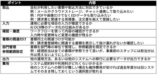 検討の結果、何らか電子帳簿保存法対応のシステムの導入が必要となった場合は、下記の点を意識してシステムを選定しましょう。