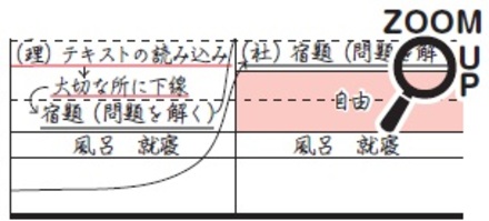 食事、入浴、睡眠といった、生活するうえで不可欠な時間は、毎日なるべく一定になるようにします。同じ時間に就寝し起床する習慣をつけ、コンディションを整えていくことが、勉強の継続とパフォーマンスアップにつながります。
