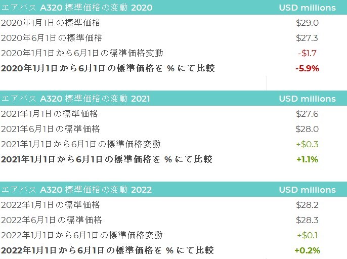 次の図は、船齢と航空機齢を5年に固定して、過去3年間の1月から6月までの船舶と航空機の標準価格を比較している。