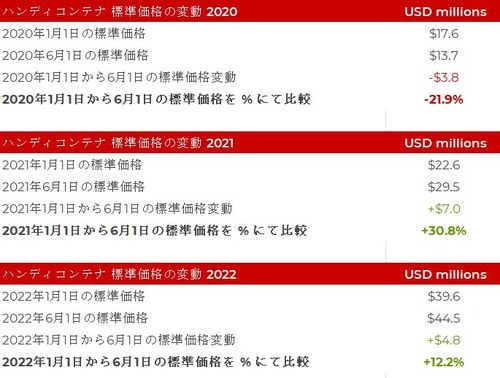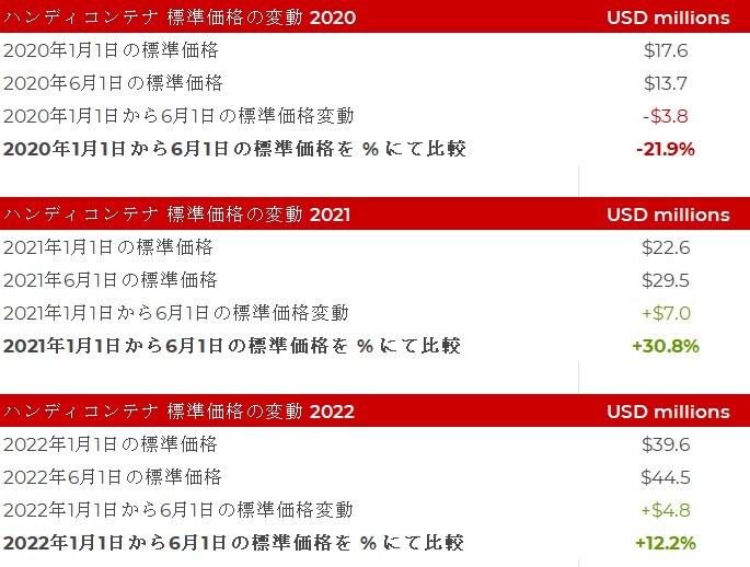 2020年1月1日から2022年6月1日の間に、船齢5年のケープサイズバルカーの標準価格はこの2年半で53.7%増加し、機齢5年のボーイング777の標準価格は6.5%減少した。
