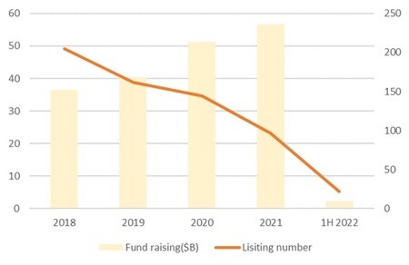 香港のIPO実績は、年初来で22件、調達額は計23億米ドルにとどまり、2003年以降で最低となっている。前年に調達した計567億米ドルに比較すると、大幅に規模が縮小したが、中国企業のIPO意向は根強いものがあり、香港取引所は今後、積極的な新規企業の上場を促す方針を17日の決算発表で示した。年後半のIPO市場の活性化には期待したい。
