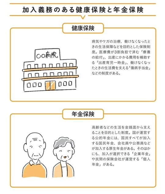 ひとつは「健康保険」。保険証を医療機関の受診時に見せると、支払い負担が3割で済みます。働けなくなった場合に金銭的な補償を受けられる「傷病手当金」も健康保険の制度のひとつです。
