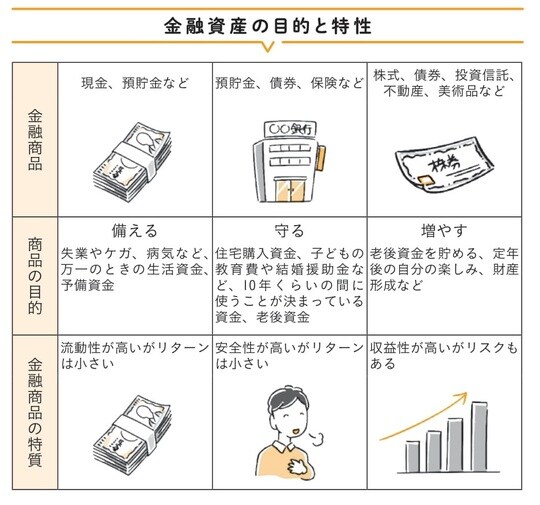住宅資金など「安全性」を優先するなら預貯金、債券、保険など。