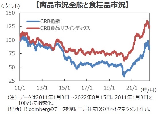 ■今年に入り市場では「高インフレ」と急激な金融引き締めによる「景気後退」が同時に進行する「スタグフレーション」への懸念が高まっています。食糧関連株はこうした「インフレ」と「不況」の両方への耐性を備えた、「スタグフレーション・ヘッジ」としての特性が注目されたこともあり、堅調なパフォーマンスを続けています。