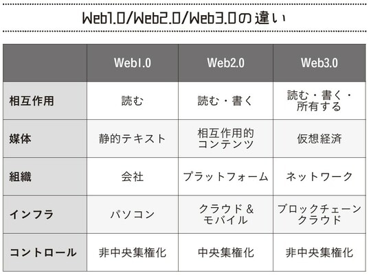 Web3では、ネット上で情報を「読む」(Web1.0)、「発信する」(Web2.0)に加え、「所有する」という概念が加わりました。