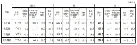 上記は一般労働者のうち、雇用期間の定めのない者について、役職別の賃金をまとめたものです。78,474事業所を調査対象とし、そのなかから有効回答を得られた56,465事業所のうち、10人以上の常用労働者を雇用する民営事業所(49,122事業所)について集計しています。