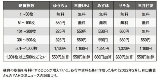 小銭の取扱いを各行が有料化
