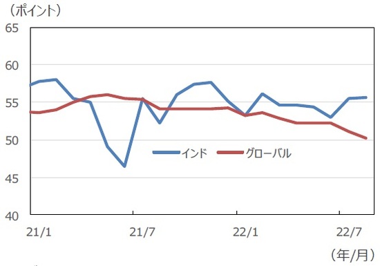 ■インドの8月の製造業購買担当者景気指数(PMI)は55.6と底堅く推移しているのに対し、グローバルPMIは緩やかながら低下基調にあります。こうした景況感の差も株価のパフォーマンスにつながっているとみられます。