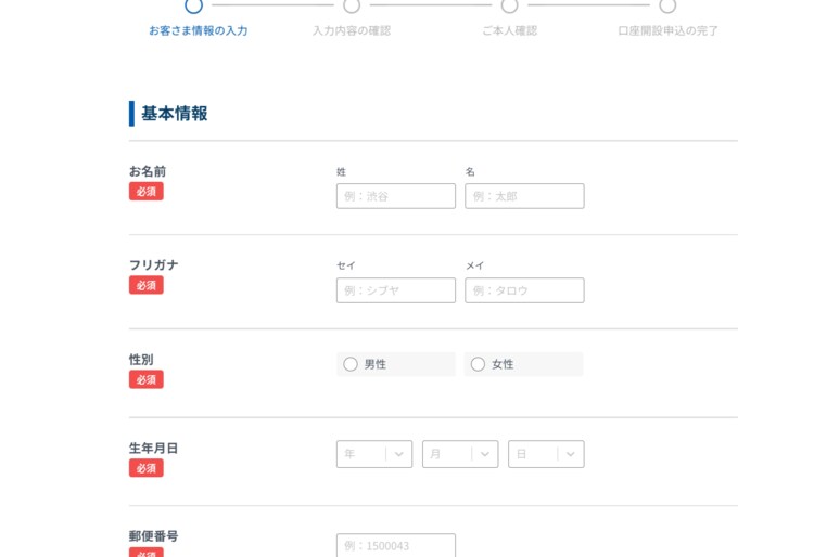 無事に認証コードの送信が終わったら、個人情報の登録手続きに移ります。それぞれの項目に正しく回答します。