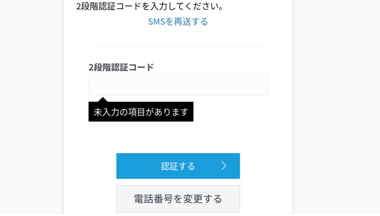 制限時間を過ぎてしまうと、入力が無効となります。もし、2段階認証コードが送信されない場合は、登録内容を確かめながら再度手続きしましょう。