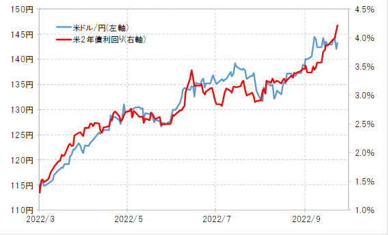 ただ足元では、上述ように米金利上昇に裏付けられた米ドル高・円安となっています。その意味では、「中長期的にはファンダメンタルズ(経済の基礎的諸条件)からかい離した行き過ぎた米ドル高・円安」ながら、短期的には米金利という「ファンダメンタルズに沿った米ドル高・円安」ということになると思います。