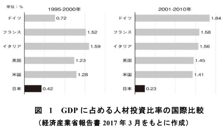 世界の動向と比較して、日本は経済規模に比してびっくりするほど人材投資をしていない。