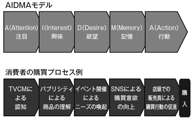 また、販促活動に関しては消費者の心理をつかむポイントの1つとしてAIDMA(アイドマ)モデルが知られています。