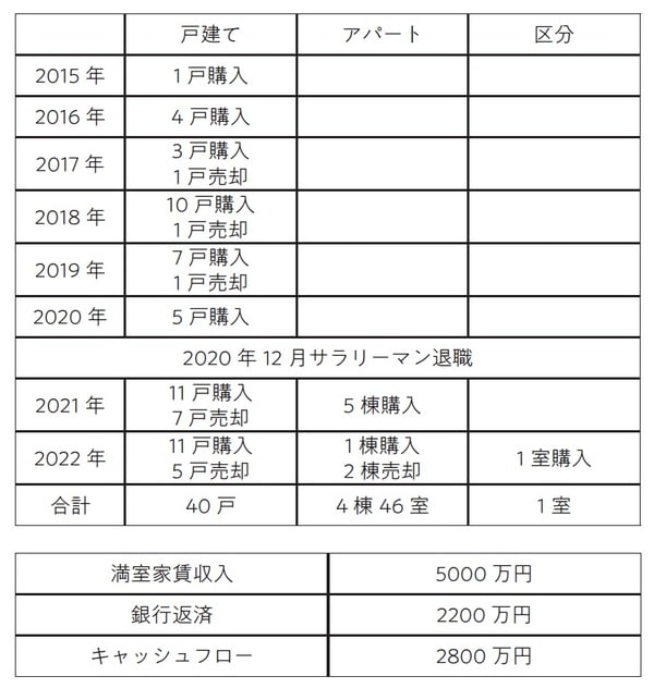 1戸目購入からの規模拡大の状況を報告します。