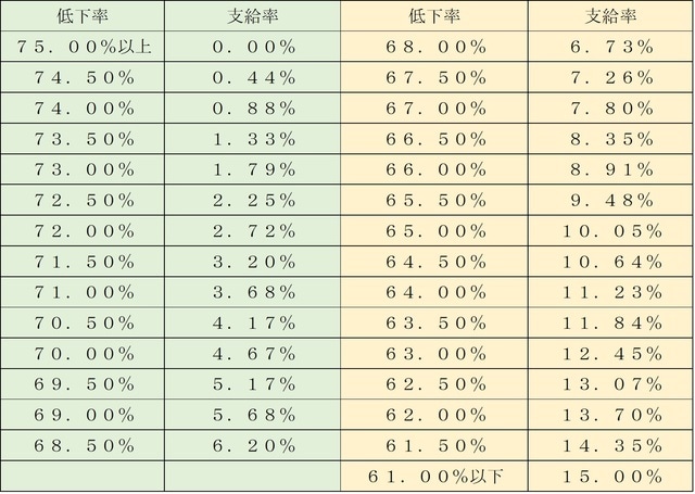 また、支給対象月に支払われた賃金額に図表4の低下率に応じた支給率を乗じることによっても、高年齢雇用継続給付金の金額を算定することができます。