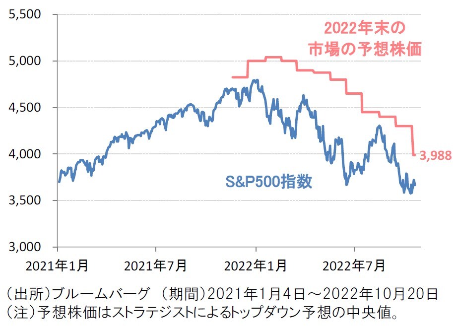 市場予想でも、米10年国債利回りは2023年に向けて3%台へ緩やかに低下するとの見方が大勢となっています。