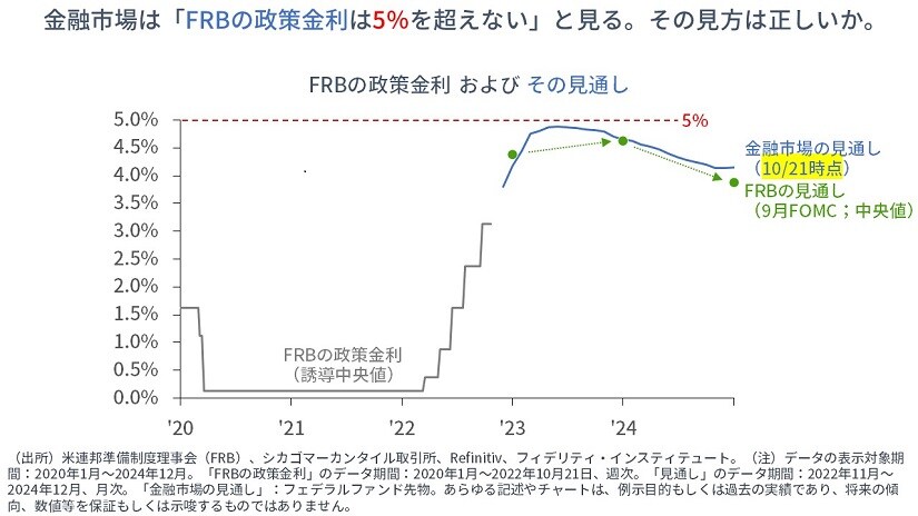 まず、[図表1]に示すとおり、金融市場は5%近くまでの利上げ(ただし、5%は超えない)を織り込んでいます。