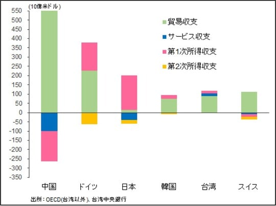 この海外投資収益依存の所得構成が極めて特異であることは、[図表4]の各国比較から明らかである。日本以外のすべての経常黒字国は、貿易で稼いでいるのである。