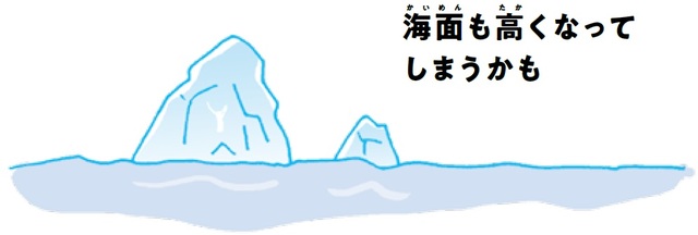気温が上がったことで氷河がとけ、海面も高くなりました。この状態が続くと、2100年までに海面は最大82センチメートルも高くなるそうです。