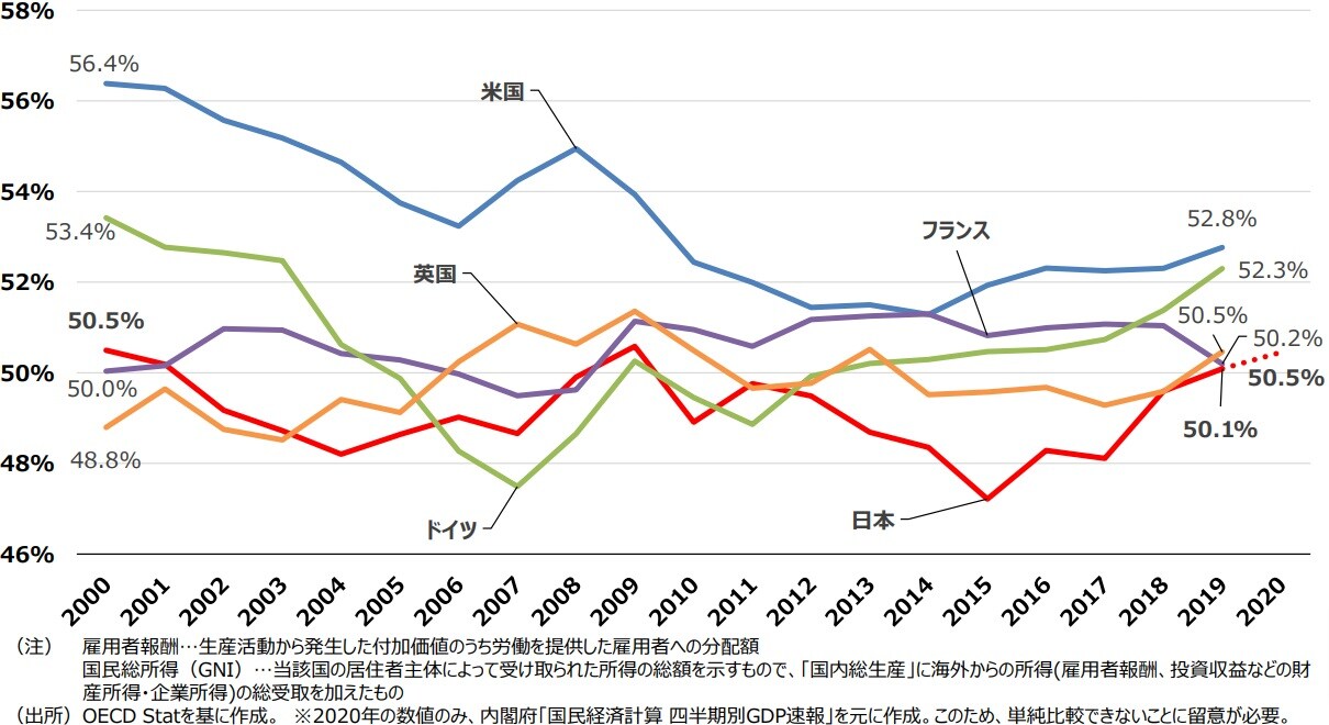 「労働分配率」の低下は、ほかの先進国でも同じだが…