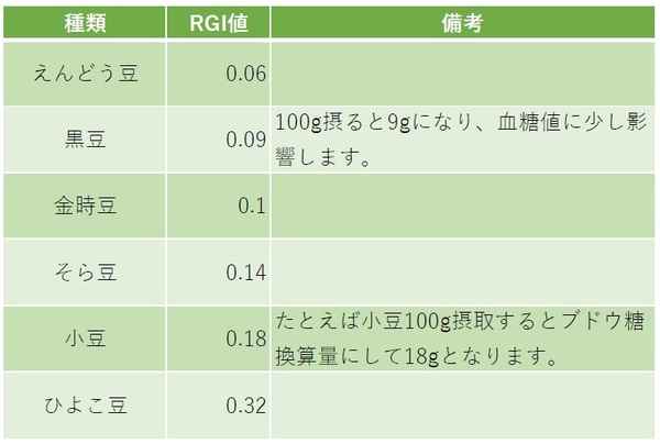 ■豆類のRGI値(図表1)