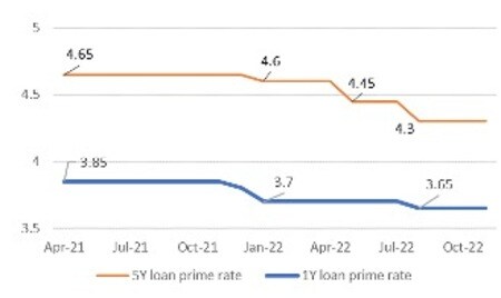 注目されていた、金融機関の貸出金利の目安であるローンプライムレート(LPR)については、中国人民銀行が1年物3.65%、5年物4.3%のまま据え置いた。3ヵ月連続の据え置きである。為替相場で、人民元がようやく安定を取り戻しつつあるところだけに、通貨安を助長しかねない利下げには慎重になったとみられる。