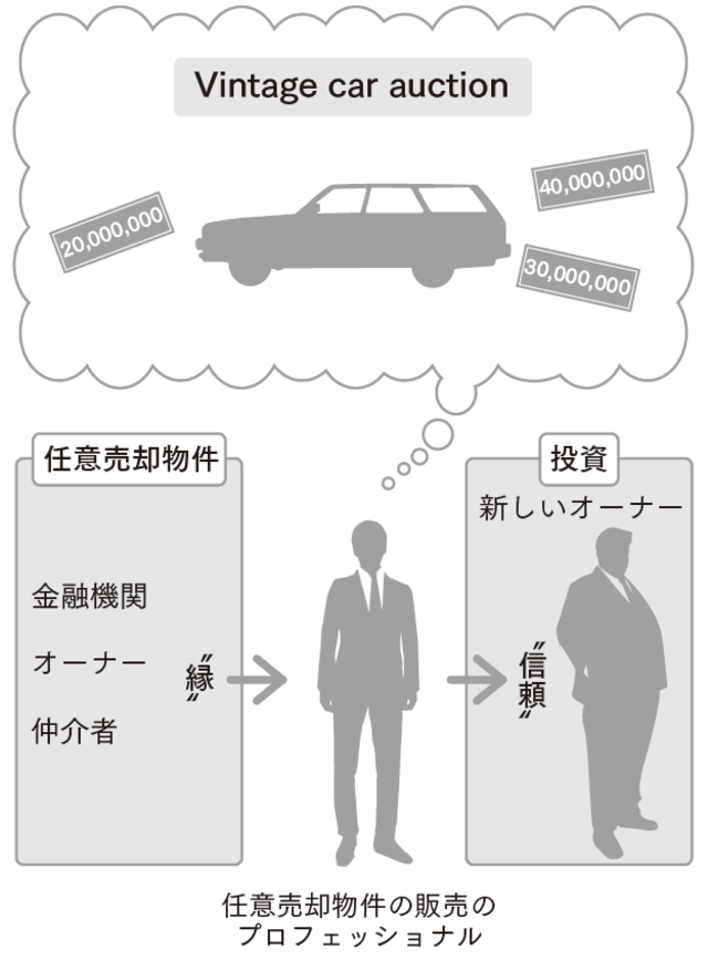 そうしたヴィンテージ車を、資格を持ったプロが独特の市場で落札し、それを完璧に整備したうえで一般の愛好家に譲り渡す。譲り渡した後は、ヴィンテージ車はお金がかかる一方ですが、任意売却物件は逆にお金を生み続ける、そのお金が出るか入るかの違いがあるだけです。