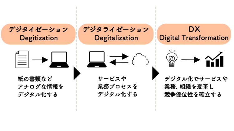 デジタル化は、DXを実現するためのスタートラインといえます。