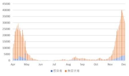 5日の新たなコロナ感染者は2週間ぶりに3万人以下となっている。今後は市民のPCR検査の義務が撤廃されるなか、一層の感染者縮小につながる可能性も高い。