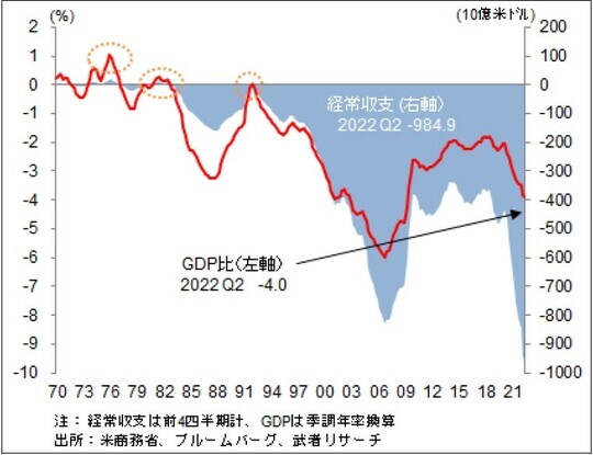3.また米国経常赤字は1兆ドル(対GDP比4%)と急拡大するなかでドル高が進んだ。