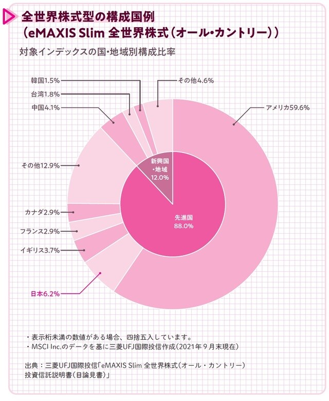 投資信託のなかには、全世界の株式を投資対象とする「全世界株式型投資信託」(以下、全世界株式)という商品があります。