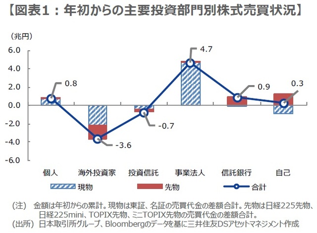 投資部門別に年初からの日本株の売買状況を検証し、今年の相場に影響を与えた主体を探る