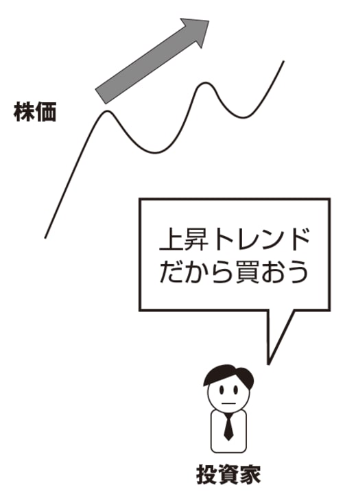 一方、トレンドが下落途中、あるいは下落が始まったところと判断された場合、「買い」は見送ります。これは非常に簡単な判断ですが、ファンダメンタル分析と同時にテクニカル分析も行って売買を判断する投資家は、残念ながらほとんどいないでしょう。