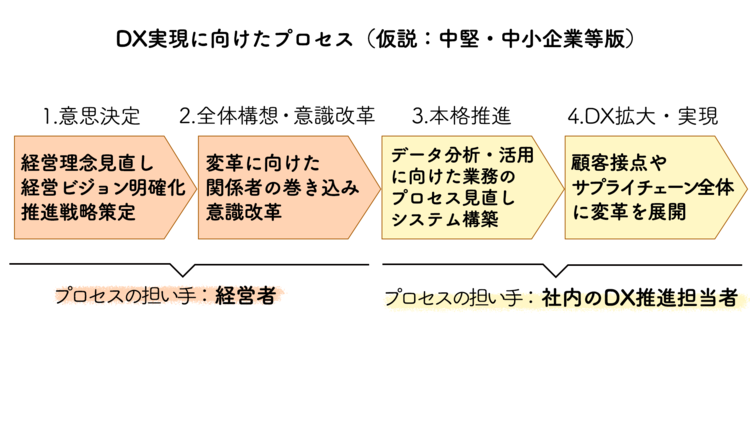 中堅・中小企業等のDX実現に向けたプロセスは、以下の通りです。