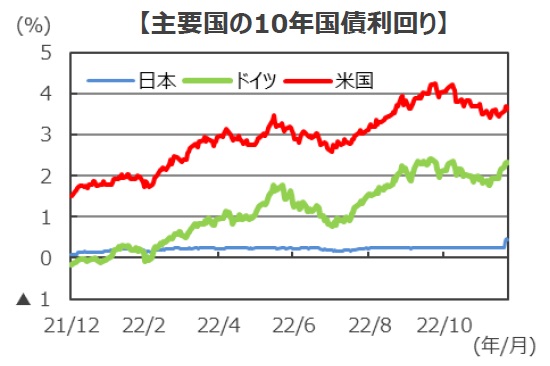■日本の10年国債利回りは長らく0.1~0.2%台のレンジで推移してきましたが、日銀が大規模緩和を修正し、長期金利の変動許容幅を拡大した12月20日を機に急騰しました。