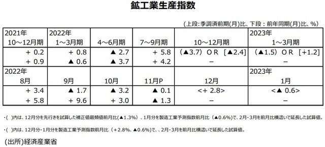 ※当レポートの閲覧に当たっては【ご注意】をご参照ください(見当たらない場合は関連記事『2022年11月分鉱工業生産指数・速報値について』を参照)。