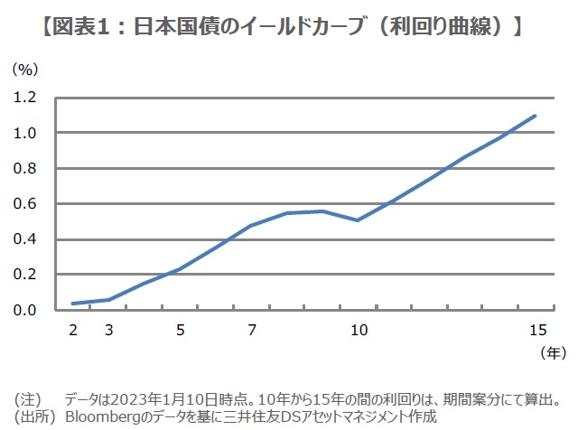 日銀は先月20日、10年国債利回りの許容変動幅について、上下0.25%から0.5%へ拡大するとともに、月間の国債の買い入れ額と各年限の買い入れ額の増額を決定しました。この理由として、債券市場の機能低下が挙げられましたが、そもそも機能低下はYCC自体に起因するところがあると思われます。また、変動幅が0.5%に拡大されて以降も、イールドカーブの歪みは解消されていません(図表1)。