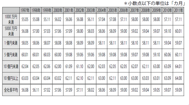 【図表4 社長の平均年齢の推移(資本金別、1997~2011年)】