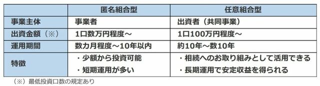 「匿名組合型」と「任意組合型」の違いとは