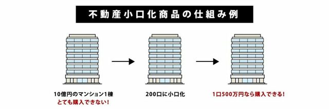 一口数万〜数百万円単位に小口化された物件に出資することで、不動産のオーナーになれるのが「不動産小口化商品」です。同じ物件を複数の投資家と共同で出資するため、「共同出資型不動産」とも呼ばれています。