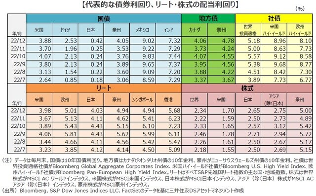 ※当レポートの閲覧に当たっては【ご注意】をご参照ください(見当たらない場合は関連記事『【主要な資産の利回り比較】金融引き締めへの懸念から債券利回りは上昇』を参照)。