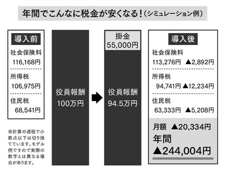 年間にすると24万4,004円の得。年間66万円を役員報酬ではなく、確定拠出年金に振り分けるだけで、24万4,004円分社会保険料や、所得税・住民税が少なくなるわけです。