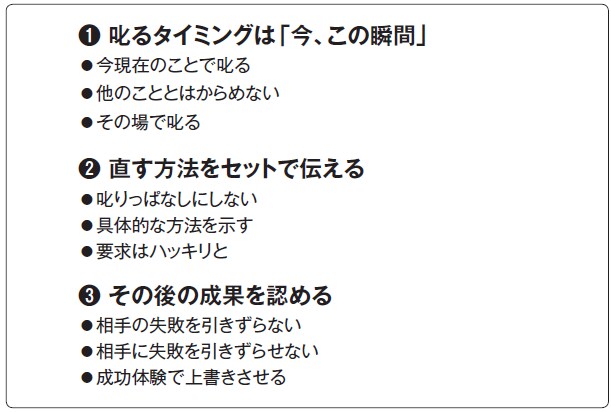 叱るタイミングは「今、この瞬間」、短い言葉で事実を叱り、過去の話を持ち出さない。