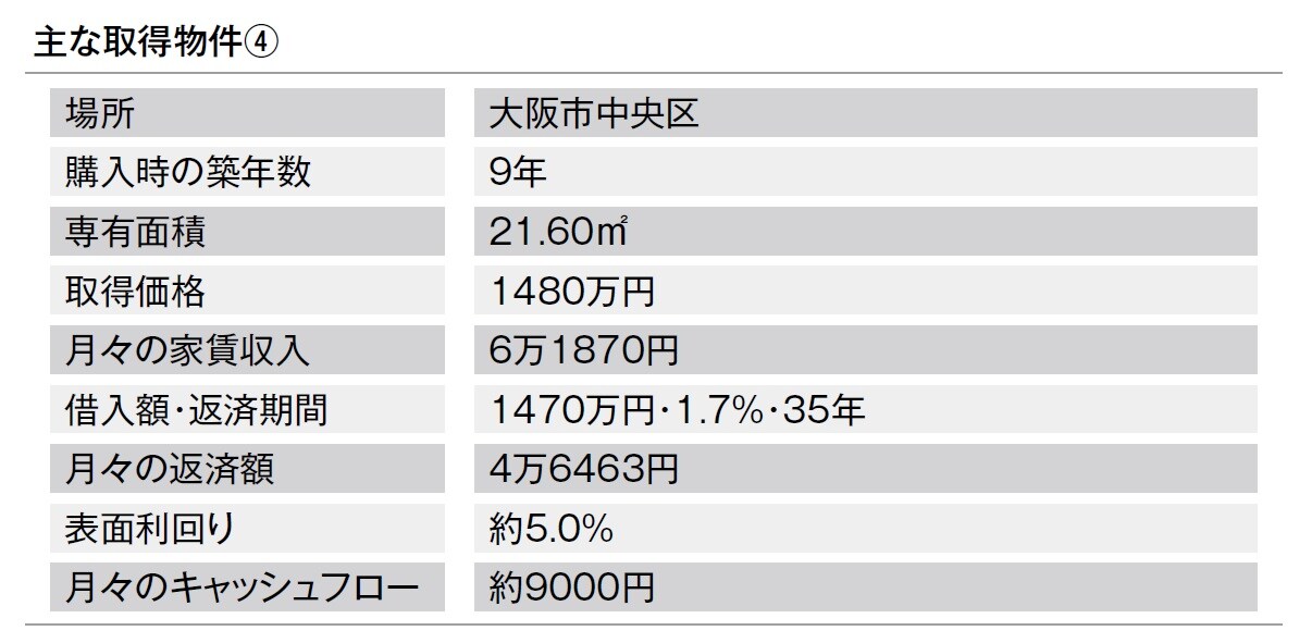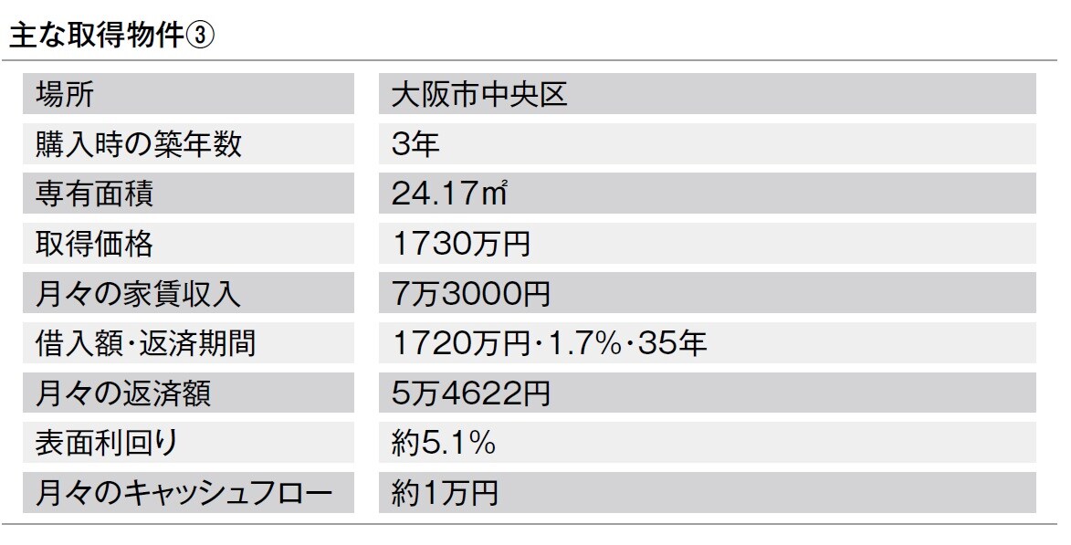 以来、西田さんは自分に相応しい投資スタンスを見出し、1年ほどで次々とご購入いただき、いまでは大阪市内の中古ワンルームを5室所有しています。