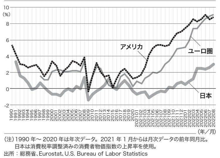 世界的にみてインフレ率は1980年代からゆっくりと低下してきました。金融引き締めや経済のグローバル化、原油などの一次産品の価格低下がその大きな要因とされています。